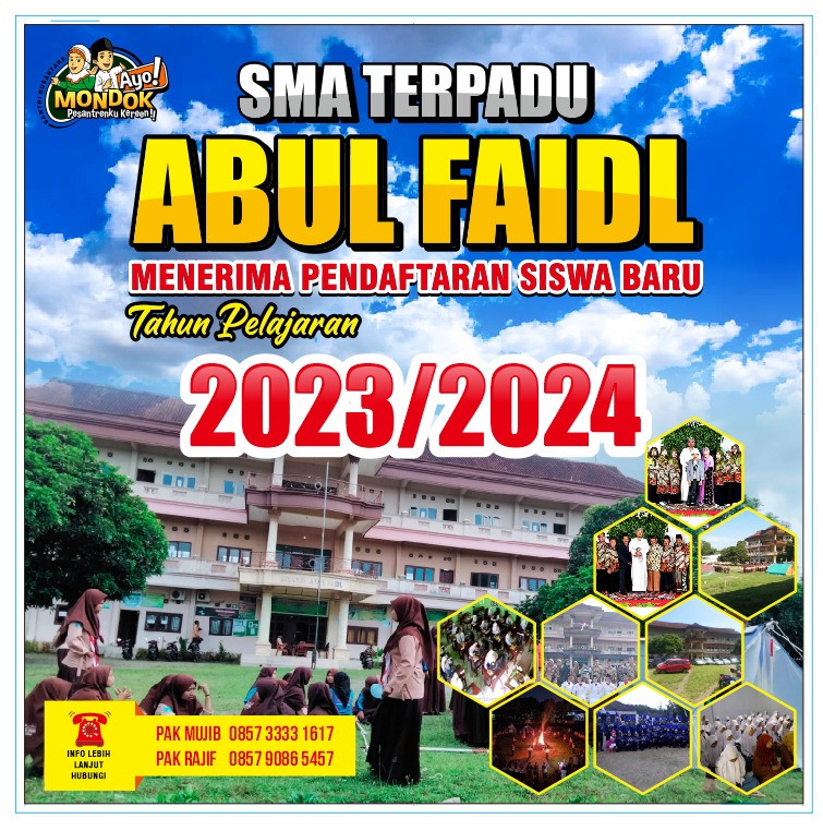 tgl posting : 16 Jan 2023SMA Terpadu Abul Faidl membuka pendaftaran siswa baru tahun ajaran 2023/2024 untuk formulir pendaftaran bisa diunduh melalui link pengumuman di web ini Ayo segera daftar . . .